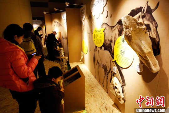 1月23日,正在上海科技馆举行的“骐骥盛壮”马年生肖展吸引了众多市民前来参观。该展览旨在马年春节来临之际,以马的生物和文化属性为线索,为民众献上一道科普大餐。