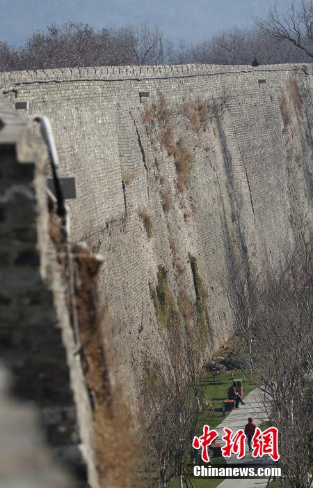 1月22日,游客在南京明城墙解放门至太平门段游玩。南京市政府日前宣布南京明城墙将于2014年8月之前实现全面开放。届时市民不仅可以站在明城墙上全面感受“一览众山小”,还可以在城墙上进行广场舞、骑自行车等活动。南京明城墙建于1366年至1386年,总长度35余公里,是世界第一大城垣。经过了600多年的风雨侵蚀和人为破坏,明城墙目前尚存25公里长,总长度仍为世界第一,其设计独特,依山水地貌,是南京最具影响和价值的文化遗产。中新社发 泱波 摄