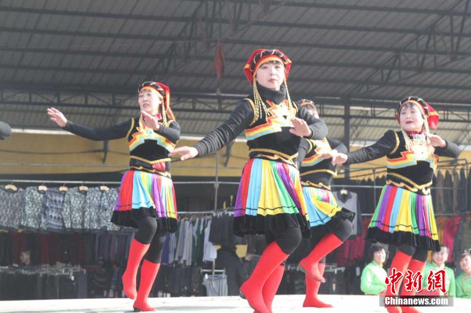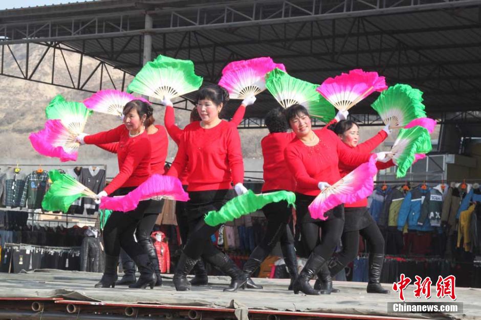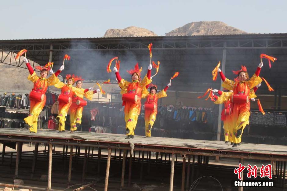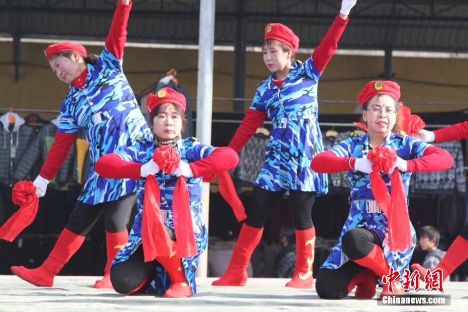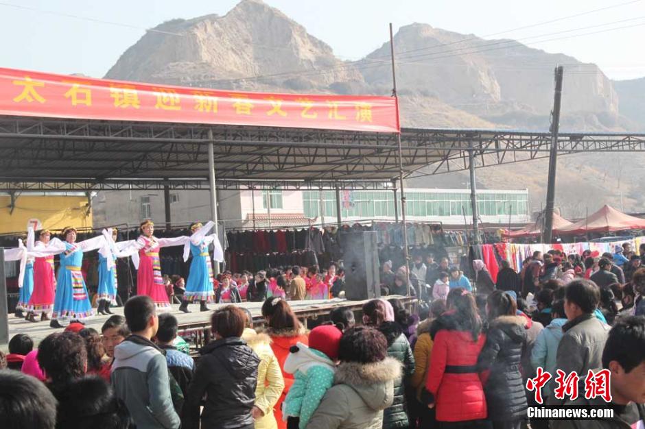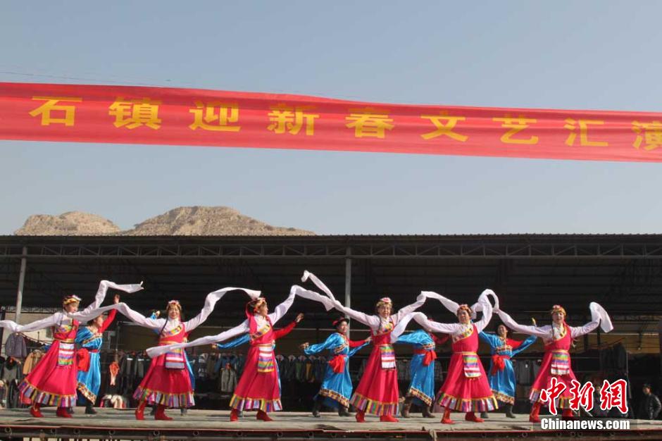 1月22日,甘肃临洮县太石镇政府临时搭建舞台,举办乡村迎新春文艺“春晚”,来自8个村的妇女8人一组或10余人一组,演员大多是40岁至60岁的妇女,她们自由组合,当日共有50个节目表演了3个多小时。虽然是寒冬腊月,但是附近民众还是携家带口观看,有的还为演员鸣炮助兴,现场非常热闹。刘玉桃 摄
