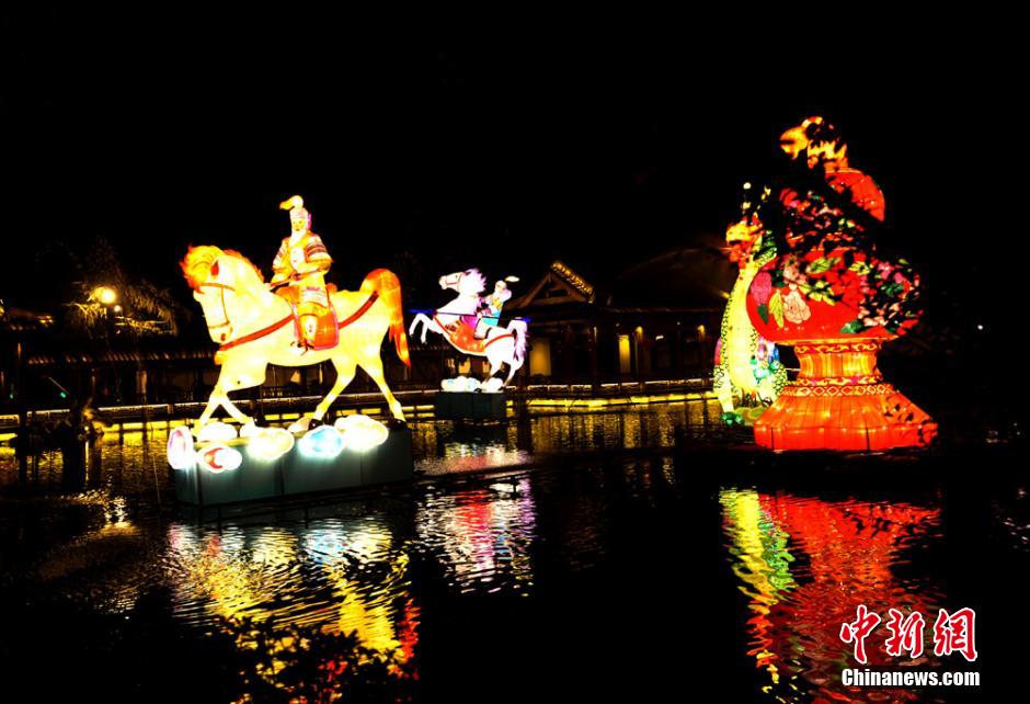 图为成都武侯祠“2014成都大庙会”灯组试灯现场。安源 摄