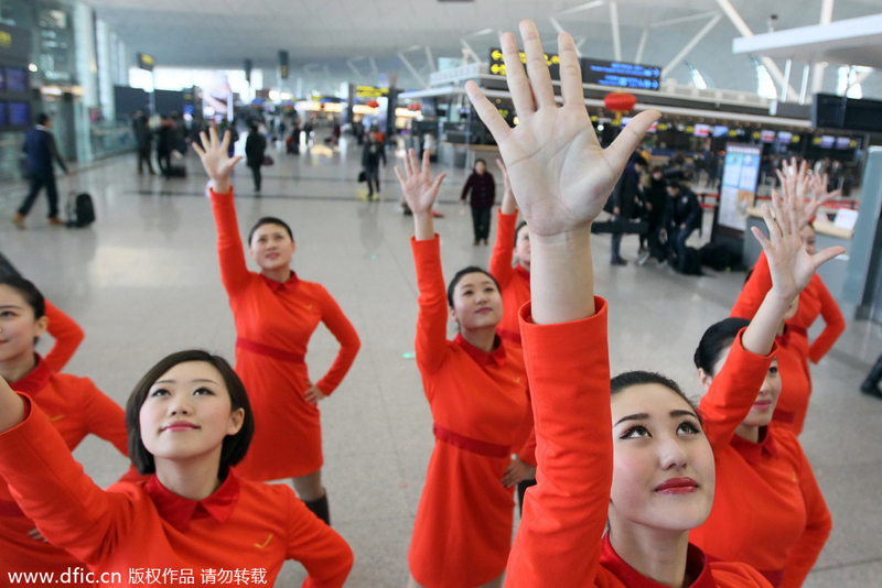 2014年1月23日是中国传统节日小年,在沈阳桃仙机场上午10时,一辆载着空姐的电瓶车驶进客流中,一位手拿手绢的空姐在人群中扭起了二人转,接着一队空姐跳起了欢快的舞蹈,随之地勤人员和机场警察也参与到其中,引来很多旅客驻足围观,他们纷纷拿出手机拍摄这一突然舞动起来的场面,两分钟后,随着舞蹈和音乐的停止,桃仙机场T3航站楼仿佛什么也没发生过。