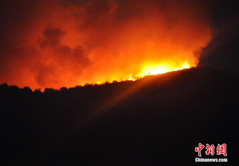 1月23日,贵州省福泉市马场坪办事处平堡村窝山林场发生一起山林火灾,大火导致5名救火人员死亡,1人受伤。经初步核实,因麻江县、黄丝镇交界处起火蔓延至马场坪办事处平堡村窝山林场。火灾发生后,截止24日凌晨1时,山火仍未扑灭。中新社发 吴波 摄