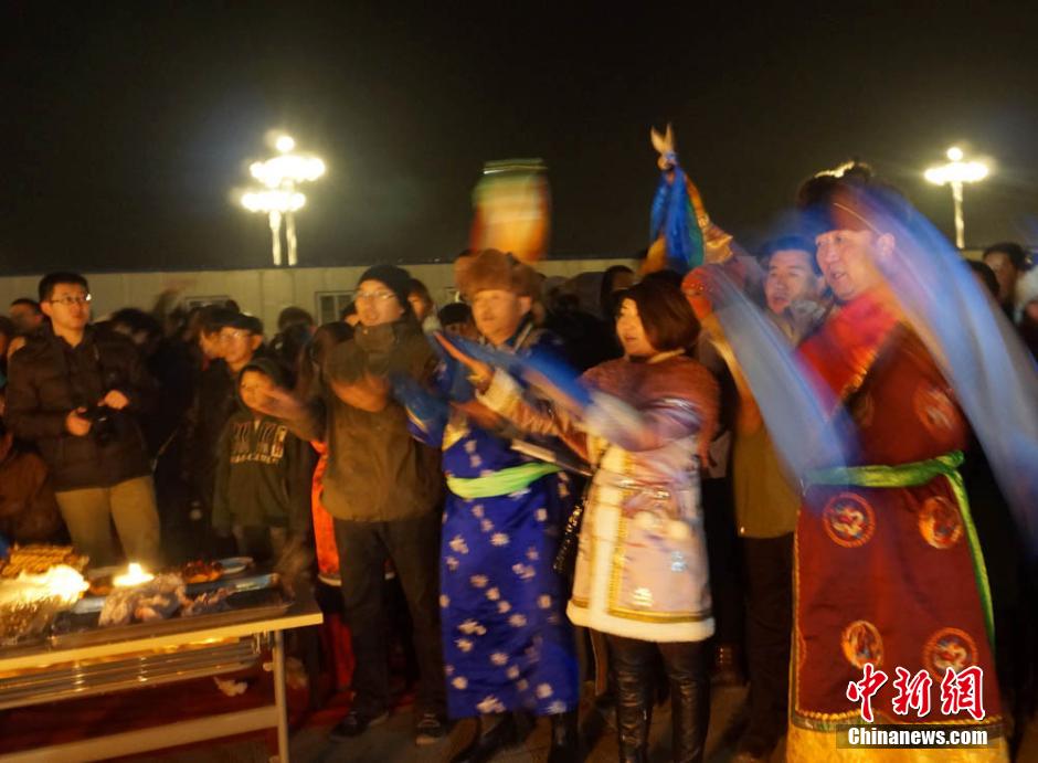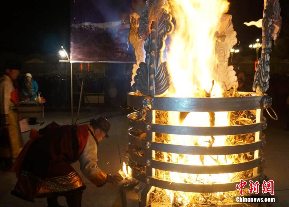 1月23日夜里,甘肃肃北蒙古族自治县广大民众身穿节日盛装,相聚在新城北区广场,举行了“肃北蒙古族自治县首届祭火仪式”。