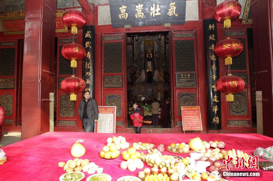 1月26日,农历腊月二十六,相传为关公祭日,民众自发携带各种供品聚集河南洛阳关林庙,祭祀武圣关公。当日是农历癸巳年腊月二十六——关羽(关圣帝君)1795年忌日,河南关林庙举行献肴、献果、献花等民间祭祀活动,同时也拉开了关林民间古庙会的序幕。中新社发 王中举 摄