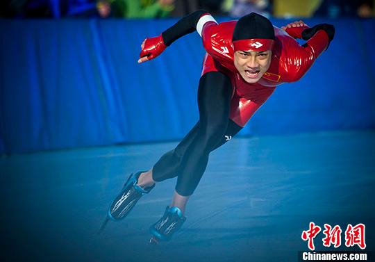 图为男子500米比赛正在进行中。 中新社发 刘新 摄