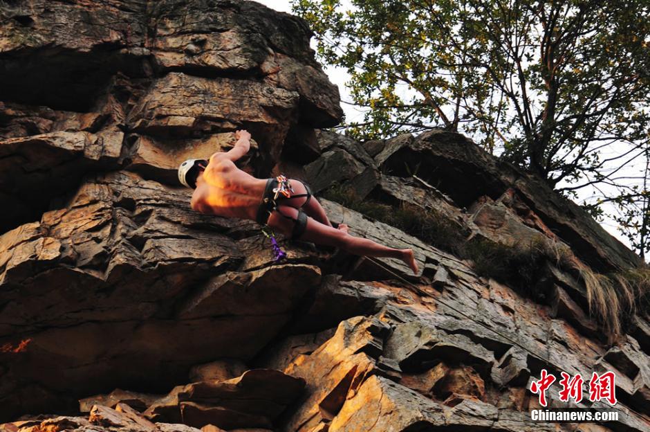 亚洲“蜘蛛人”李童星裸攀张家界“草泥马峰”