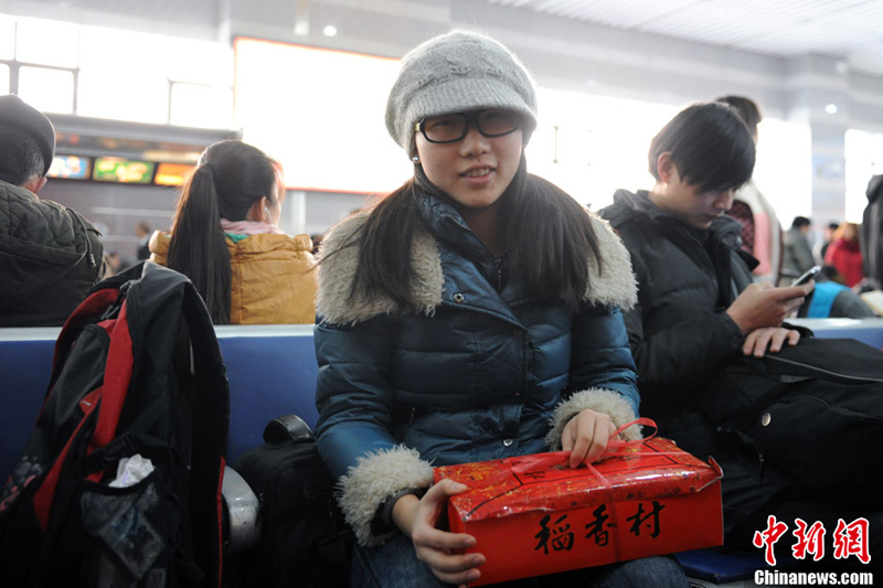 大三学生小肖,因为留在学校实验室里做课题,才在错过了“学生潮”后,赶着“务工潮”踏上了返回湖北武汉的旅程。小肖说,平时课少或者不忙的时候,也会在周末抽空回家“转转”,所以这次回去没有准备特别的礼物。倒是家里的外公、外婆喜欢北京的特色糕点,就给买了点带回去孝敬他们。图/张越 文/张龙云