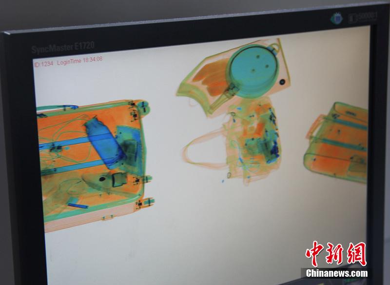 1月27日,2014年节前春运客流逼近高峰,旅客们带着大包小包的行李踏上回家的旅程。随着浙江宁波火车站内客流量逐渐增大,大量的行李让安检仪也变得繁忙。不过不断进入安检通道的各类行李,在安检机的电子屏幕上形成了一幅幅浓缩着期盼和向往的归家图,这些图画所抒写和记录的是春运的历史和变迁。图为安检仪下的高压锅。林波 摄