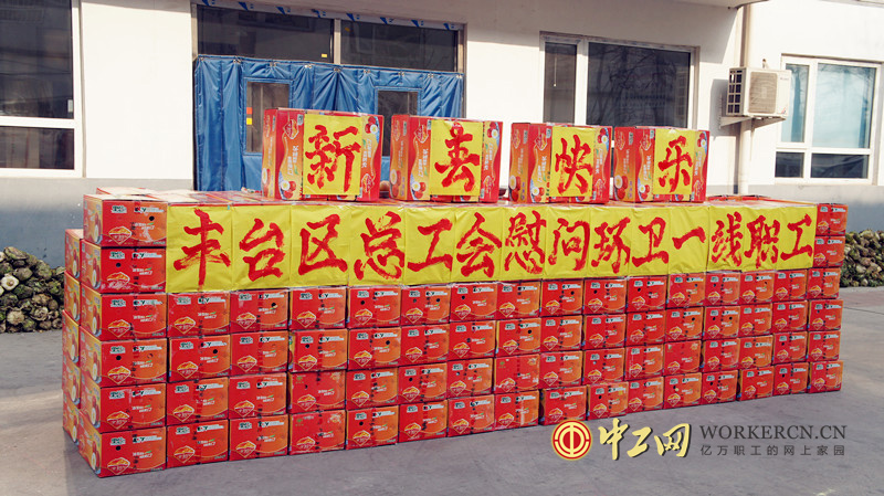 图为慰问组来到环卫机扫队,为节日期间仍要坚守在岗位上的环卫工人送去了象征吉祥如意的苹果。中工网记者 葛姗 摄