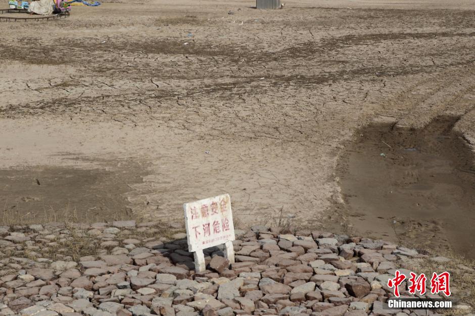 黄河郑州调蓄池水位创历史最低 民众在裸露河床上放牧