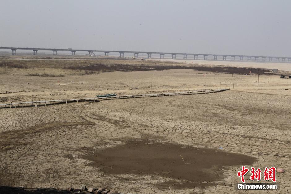 1月28日,河南郑州黄河花园口段,裸露着河床。中新社发 王中举 摄