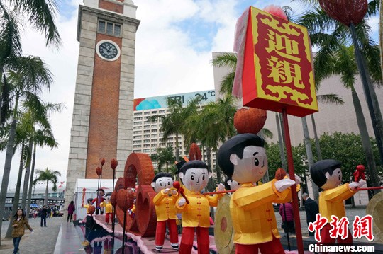2月5日,访港游客在欣赏专题彩灯“情意漫游”展览。中新社发 洪少葵 摄