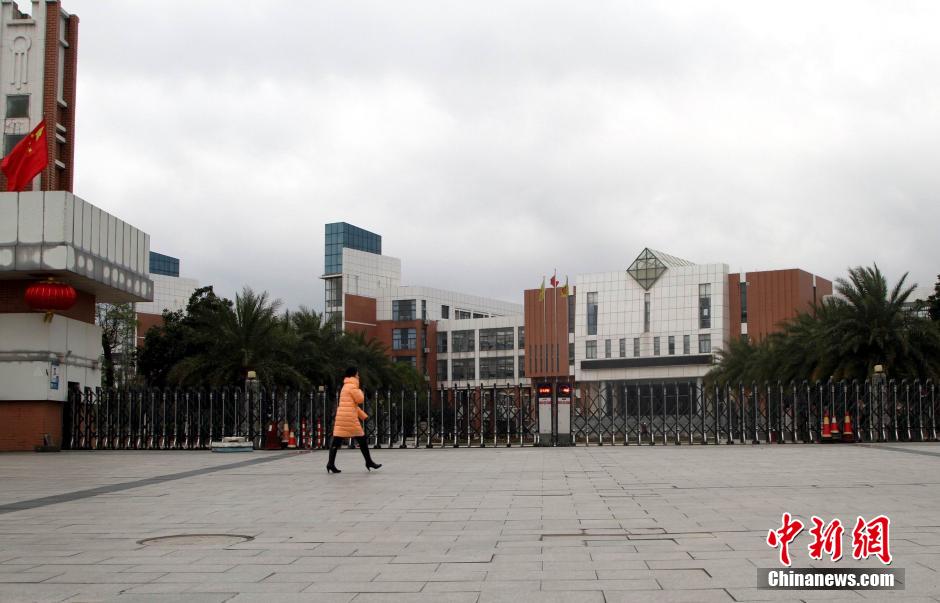 2月7日,市民从南昌一所中学门口走过。当日,南昌市教育局发出“关于中小学、幼儿园推迟一周开学时间的紧急通知”。通知指出,根据气象部门天气预报,近期南昌将有一次大风降温雨雪天气过程,为确保中小学、幼儿园师生出行安全,决定将新学期开学时间由原定的2月10日推迟为2月17日。中新社发 姜涛 摄