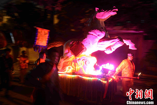 2月7日晚,福州民间马年游“马神”,祈福新的一年风调雨顺、五谷丰登。中新社发 王东明 摄