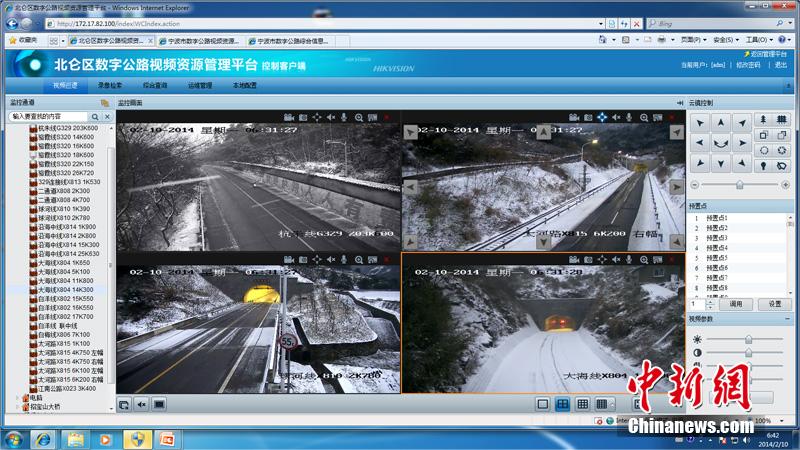 2月9日早晨,浙江省宁波市下起了今冬第一场雪。2月10日,宁波境内多条高速公路因积雪冰冻关闭,扫雪车忙除雪通道。截至2月10日9时50分,甬金主线正常,沿线收费站除溪口西进口限制大客车、危化品车进入,其他正常开通。穿好高速主线及进口恢复正常通行。象山港大桥双向从云龙主线及象山进口开始压道放行。图为宁波北仑通过数字公路抓拍的除雪画面。顾春波 摄