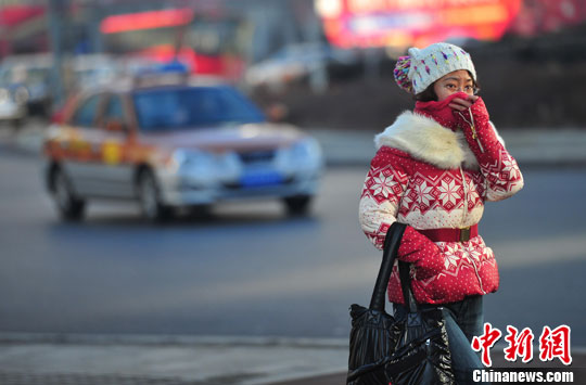 图为在寒冷天气里出行的沈阳市民。中新社发 于海洋 摄