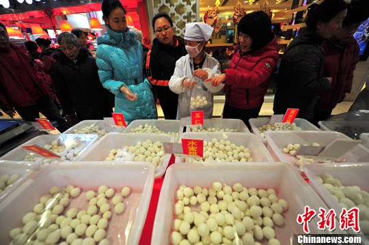 2月11日,沈阳一家商场顾客正在采购元宵。中新社发 于海洋 摄