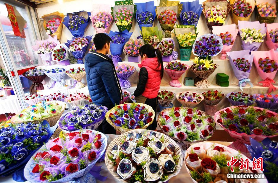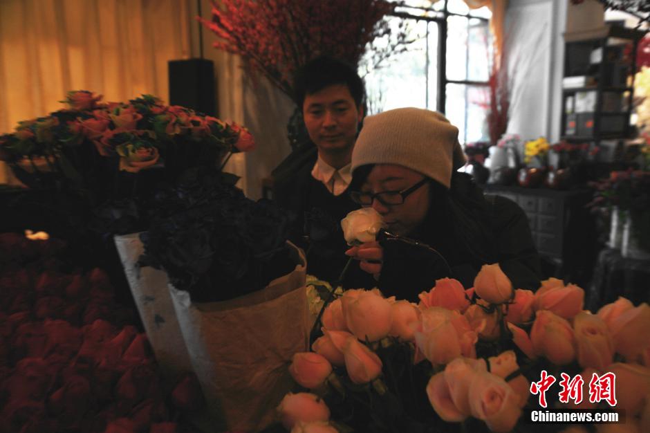 2月11日,浙江杭州中山北路一家高档鲜花门店内,店主正在为即将到来的情人节准备鲜花货源。由于中国鲜花的主产地云南昆明遭遇了几十年罕见的大雪,大面积的花田受冻,产量骤减,杭州市场上玫瑰、百合等节日热卖花卉情人节价格将是平时5倍。中新社发 李晨韵 摄