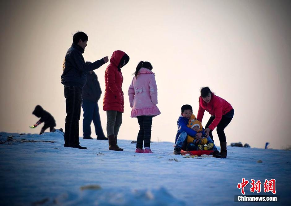 乌鲁木齐城区小山坡成“滑雪场”