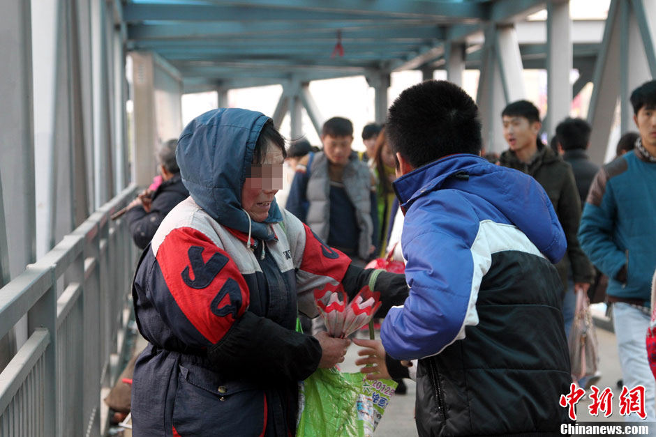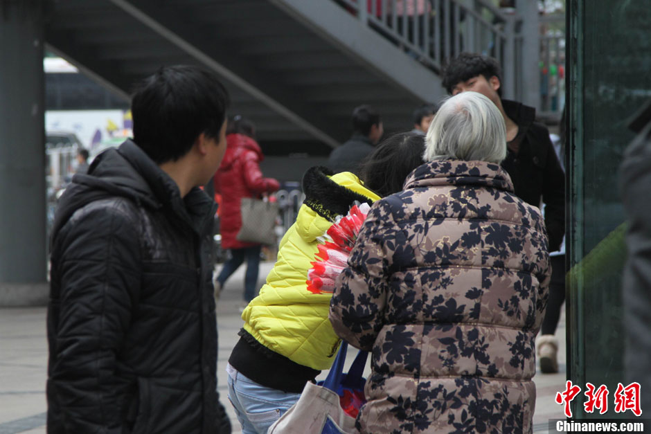 “情人节”送女友一束玫瑰花制造一个惊喜本是一件很浪漫的事情,但要是遭遇强行要求买花那就显得很是尴尬。2月14日是西方情人节,在江西南昌八一广场人行天桥下,个别卖花者看到年轻情侣或行人,就径直走向前“强拉卖花”。如果对方不买花,卖花者甚至一路拽着行人衣服不让走人,这一幕让不少行人哭笑不得。姜涛 摄