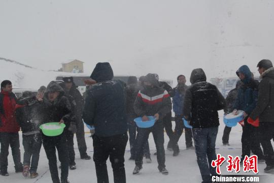 开幕式结束后,工作人员和当地游客进行了泼雪娱乐。朱景朝 摄