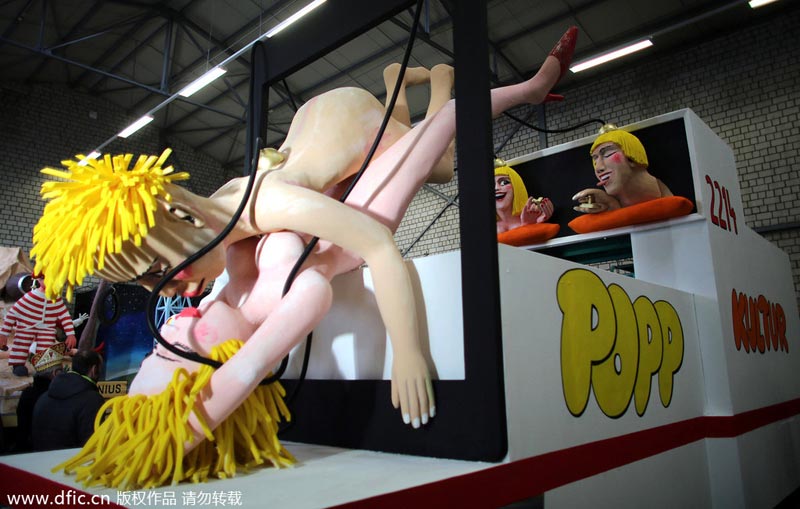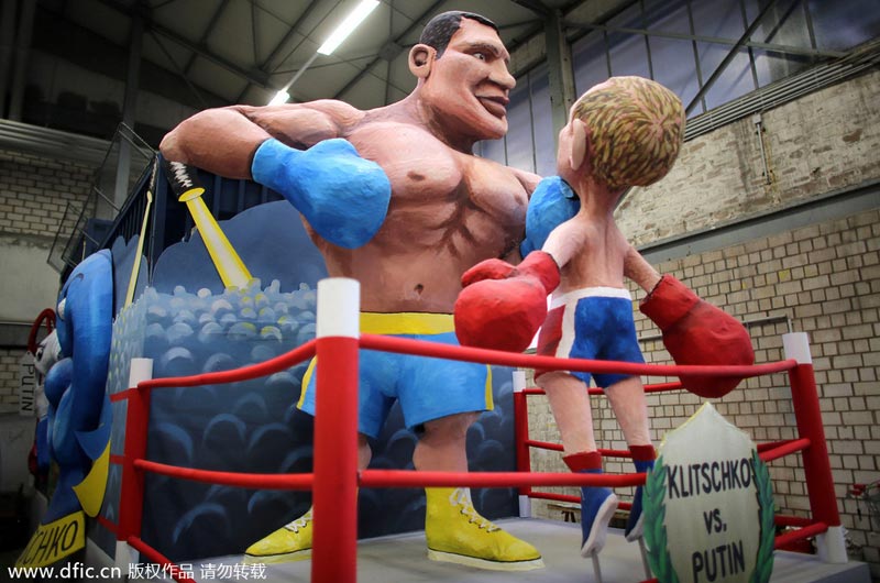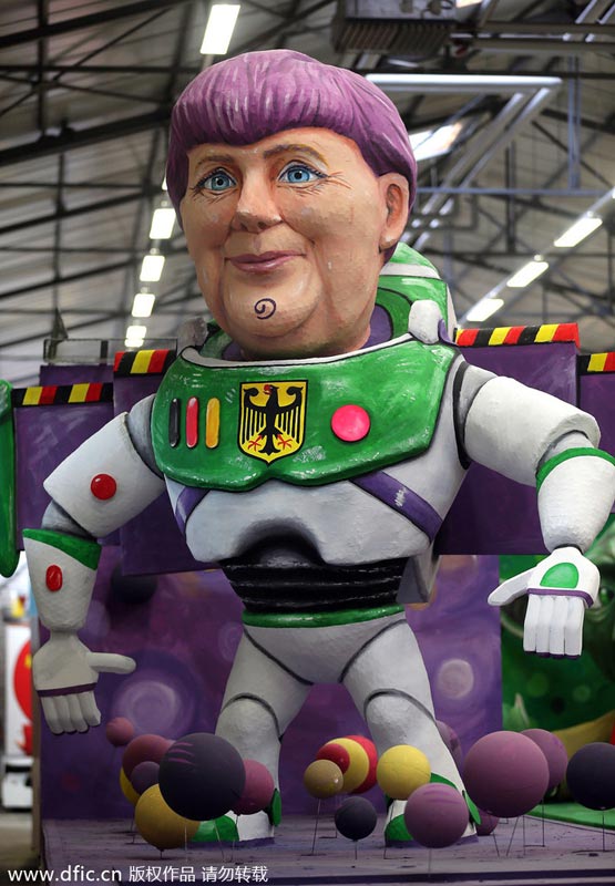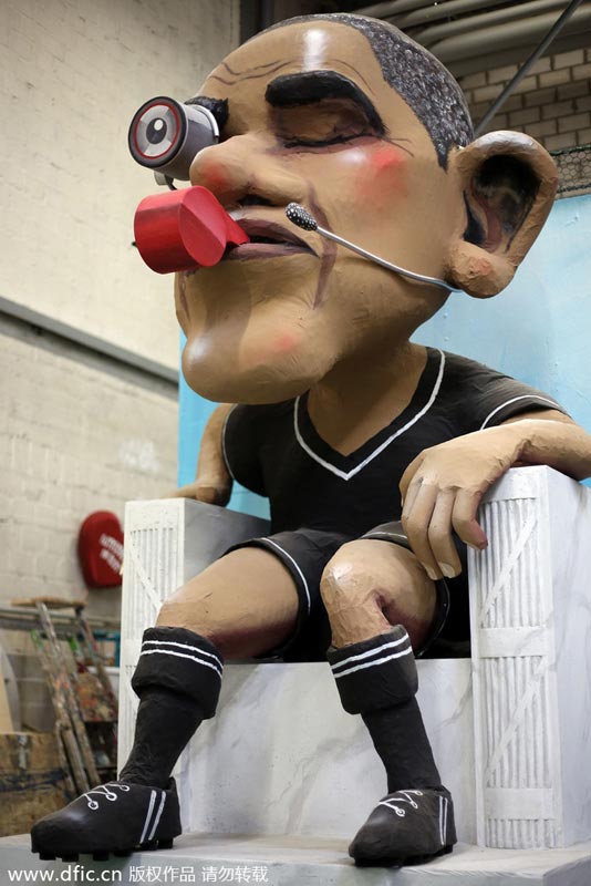 当地时间2014年2月25日,德国科隆,忏悔星期一游行花车曝光,美国总统奥巴马戴着假眼,被讽刺NSA窃听丑闻。