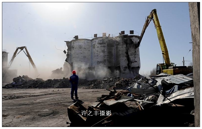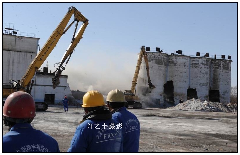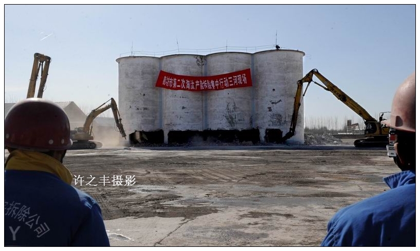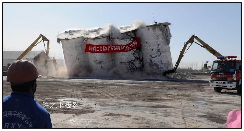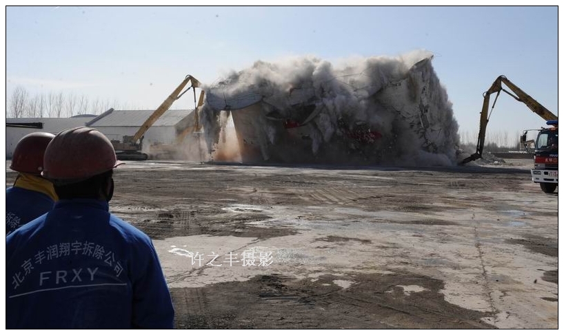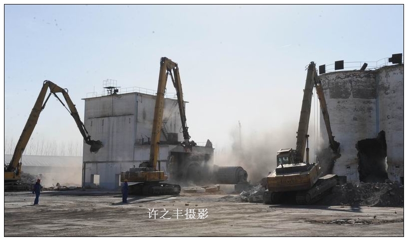 2014年2月27日下午,在河北三河市两家水泥企业的生产线轰然倒塌被拆除。据了解,此次拆除行动共涉及水泥、矿粉企业11家、淘汰产能632万吨,减少粉尘排放1390吨。进一步加大大气污染防治,缓解北京周边地区空气污染的力度。图为三河市一家水泥企业被拆除现场。工人日报-中工网记者许之丰摄影报道