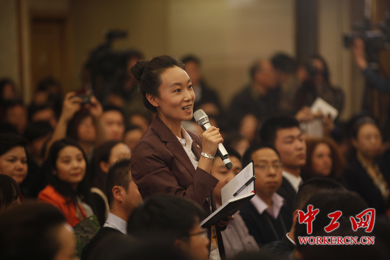 3月2日,全国政协十二届二次会议新闻发布会在人民大会堂新闻发布厅举行。大会新闻发言人吕新华 向中外媒体介绍本次大会有关情况并回答记者提问。图为记者提问。 中工网记者 韩靖摄