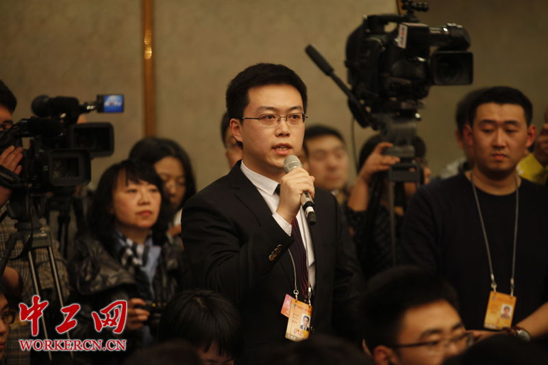 3月2日,全国政协十二届二次会议新闻发布会在人民大会堂新闻发布厅举行。大会新闻发言人吕新华 向中外媒体介绍本次大会有关情况并回答记者提问。图为参加本次新闻发布会的记者在提问。 中工网记者 韩靖摄