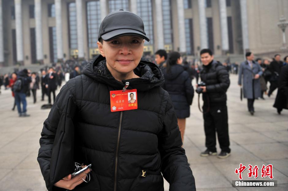 3月3日15时,中国人民政治协商会议第十二届全国委员会第二次会议在人民大会堂开幕。开幕会后宋丹丹走出会场。中新社发 金硕 摄