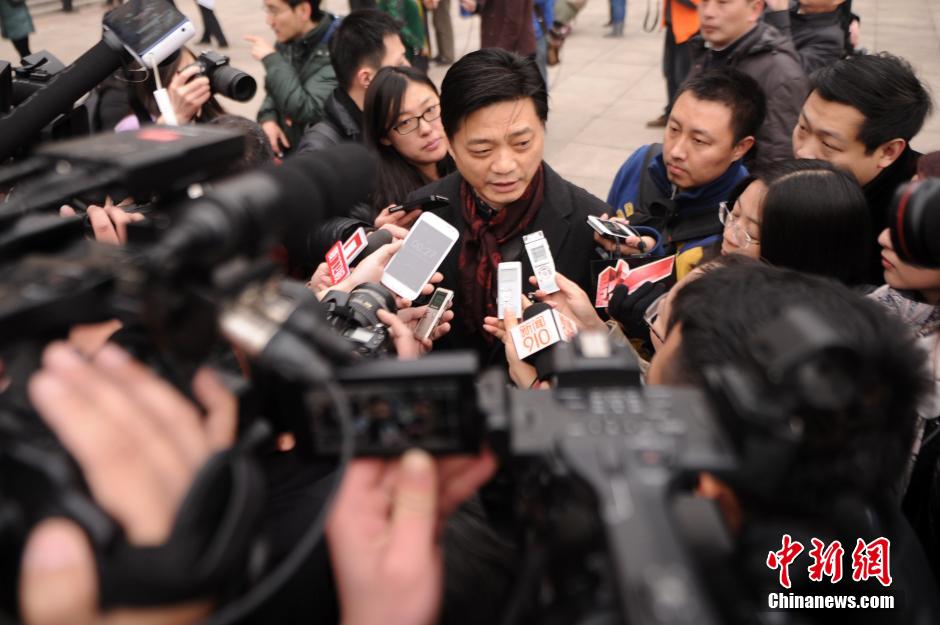 3月3日,全国政协十二届二次会议开幕会在北京人民大会堂举行。委员崔永元接受媒体记者采访。中新社发 陈超 摄