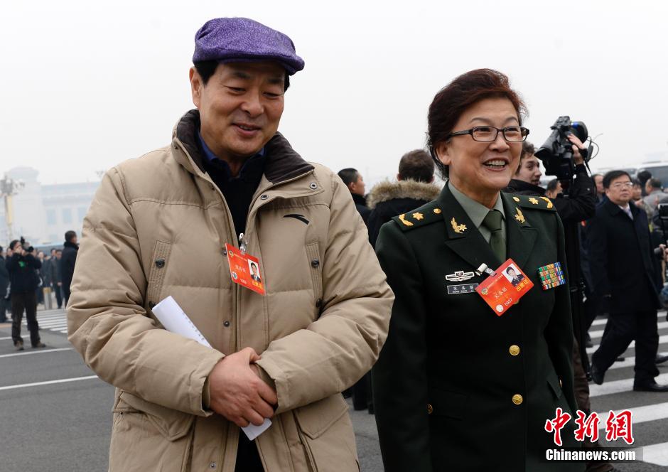 3月3日15时,中国人民政治协商会议第十二届全国委员会第二次会议在人民大会堂开幕。濮存昕委员与宋春丽委员步入会场。中新社发 刘震 摄