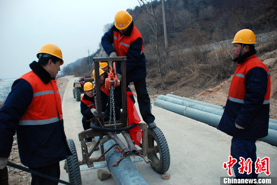 3月3日,沈阳供电段凤城电力车间职工将电杆运送到现场。为确保沈丹线路铁路供电平稳畅通,沈阳铁路局沈阳供电段段凤城电力车间,对沈丹线凤凰城站至中兴站间近14公里的贯通线路进行大修作业。中新社发 杨威 摄