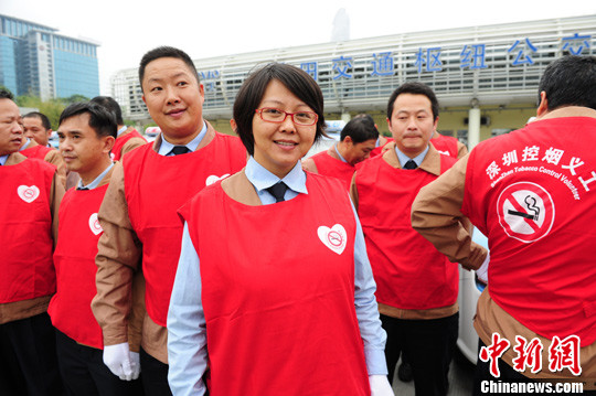 3月4日,深圳市鹏程电动爱心车队共有250名的哥的姐在全市拉开控烟宣传活动,遵守深圳经济特区控制吸烟条例,倡议少吸一口烟,多一份健康,拒绝烟草,从我做起,争做文明的哥;同时发起“日行一善”爱心行动。中新社发 陈文 摄