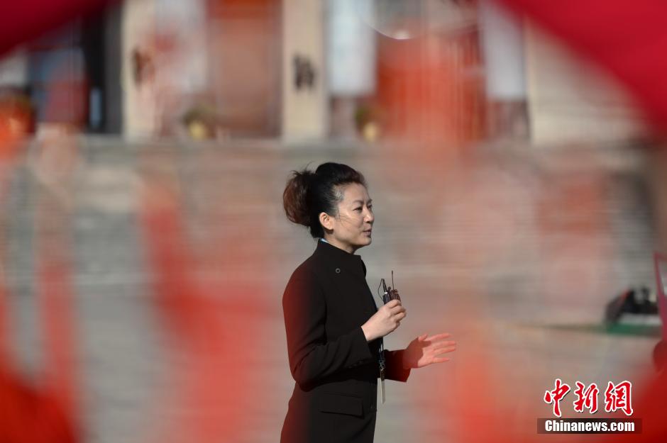 3月5日上午,第十二届全国人民代表大会第二次会议在人民大会堂开幕。央视记者王小丫出镜报道。中新社发 廖攀 摄