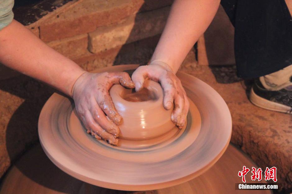 甘肃民间手工复制5000年前彩陶 发扬马家窑文化