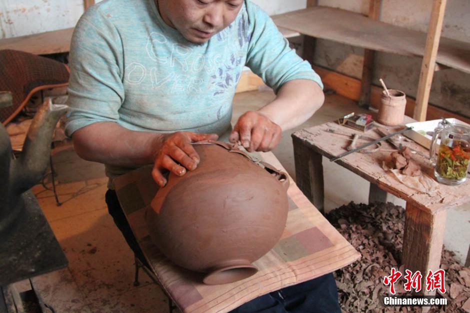 甘肃民间手工复制5000年前彩陶 发扬马家窑文化