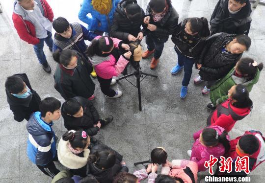 妻子别凤宣教特校的孩子们编织发饰 王康明 摄