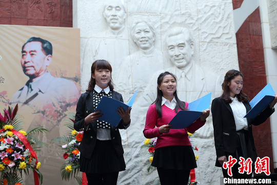 3月5日,来自南京高校的大学生们朗诵诗歌。当日,“永远的怀念”纪念周恩来诞辰116周年诗歌朗诵会在南京梅园新村纪念馆举行,以诗歌朗诵的形式缅怀伟人光辉的一生。中新社发 泱波 摄