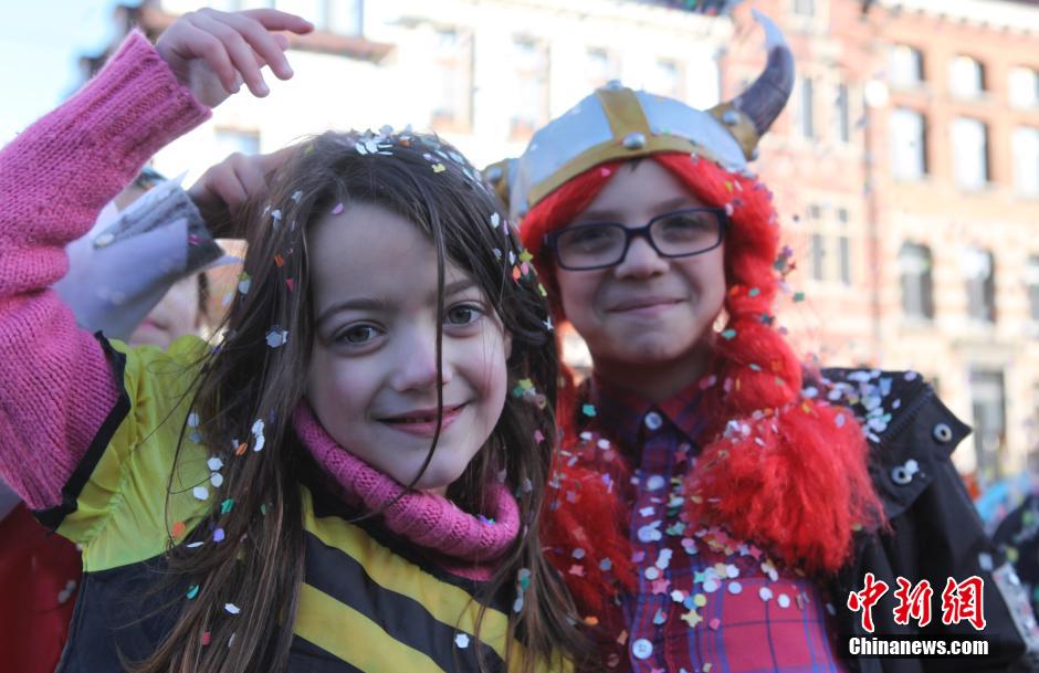 3月4日,比利时南部小镇班什的狂欢节进入最后的高潮。班什狂欢节寓意庆祝冬天结束,喜迎春天来临。起源于16世纪中叶的班什狂欢节,与法国尼斯、德国科隆和意大利威尼斯的狂欢节齐名,每年都吸引着世界、特别是欧洲各国的游人前往参加和观看。中新社发 沈晨 摄