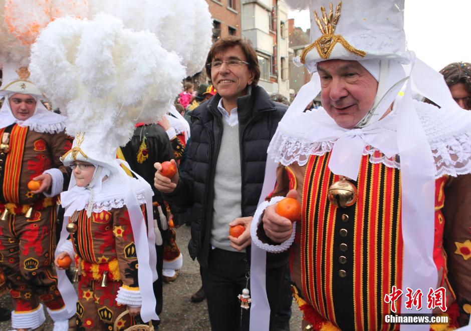 3月4日,比利时南部小镇班什的狂欢节进入最后的高潮。班什狂欢节寓意庆祝冬天结束,喜迎春天来临。起源于16世纪中叶的班什狂欢节,与法国尼斯、德国科隆和意大利威尼斯的狂欢节齐名,每年都吸引着世界、特别是欧洲各国的游人前往参加和观看。中新社发 沈晨 摄
