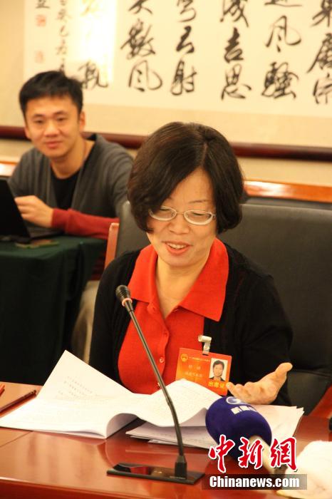 3月6日,全国人大代表、著名诗人舒婷在福建代表团小组会上发言呼吁政府加大对文化的投入。舒婷现任福建省文联副主席、厦门市文联主席,其代表作《致橡树》、《祖国,我亲爱的祖国》。中新社发 徐德金 摄