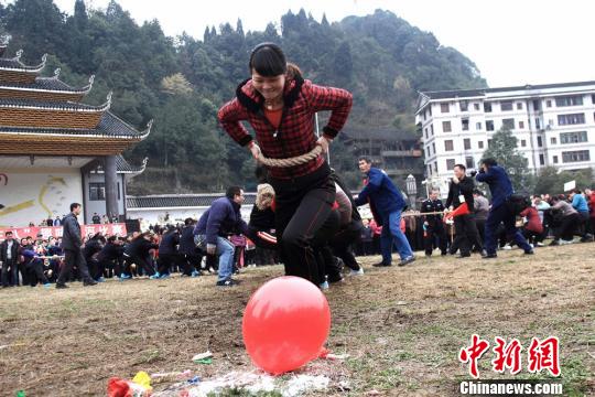 3月5日,湖南通道侗族自治县举办庆“三·八”妇女节趣味拔河比赛,共吸引了756名运动员参赛,其中女运动员达到504人。尹序平 杨军卫摄