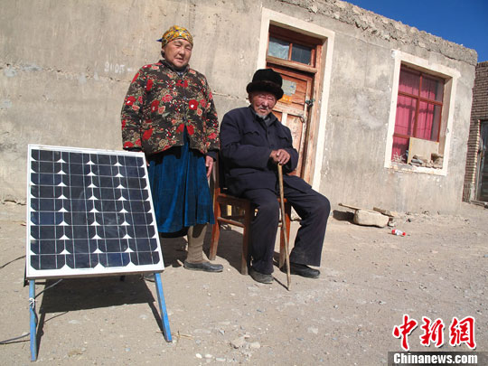 图为托云乡苏约克村的司马义·艾沙夫妻在晒太阳,他身边的太阳能板不久后将退出日常生活。