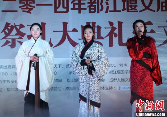 3月6日晚,四川都江堰文庙在棂星门下掀开了祭孔大典系列活动之“南风梦回礼乐文化晚会”。演出结合文庙的雅乐资源,主推“古风音乐”,以古风音乐、汉服及汉舞的展演为主,突出华夏礼乐的独特美感,兼具知识性和艺术性。图为演出现场。中新社发 雅时 摄