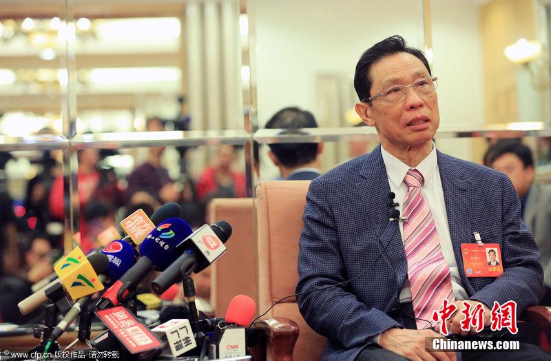 3月6日,全国人大代表、中国工程院院士钟南山在北京回答记者关于雾霾治理、伤医事件等的提问。中新社发 侯宇 摄