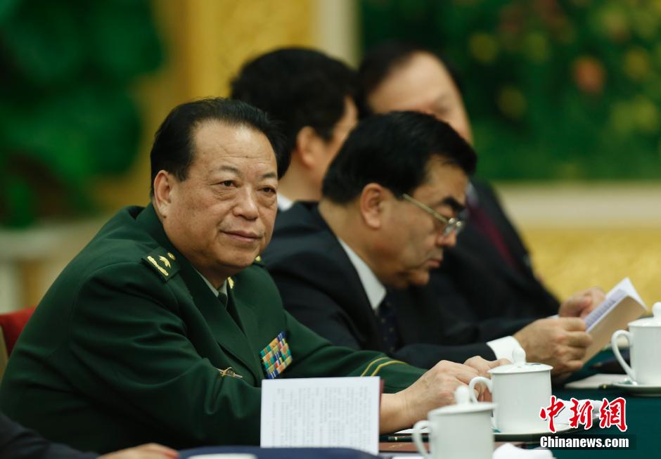 3月6日,十二届全国人大二次会议新疆代表团审议政府工作报告。图为武装警察部队副参谋长齐保文参加会议。中新社发 杜洋 摄