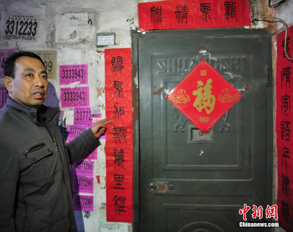 3月10日下午,靳成军来到好友张中海家门口,家中无人,大门紧闭,张中海的家人已经赶去北京。大门上所贴的春联是张中海亲手所书。据了解,马来西亚航空公司飞往北京的MH370航班上有包括张中海在内的18名河北籍乘客。中新社发 翟羽佳 摄