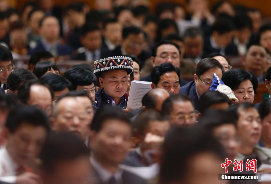 3月10日,十二届全国人大二次会议在人民大会堂举行第三次全体会议,听取最高人民检察院检察长曹建明作最高人民检察院工作报告、听取最高人民检察院检察长曹建明作最高人民检察院工作报告。中新社发 杜洋 摄
