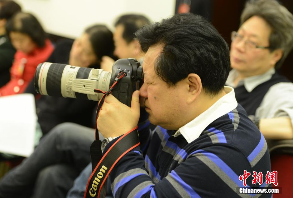 3月10日,全国政协委员、中国文学艺术界联合会副主席徐沛东在人民大会堂试用记者的单反相机。中新社发 杨华峰 摄